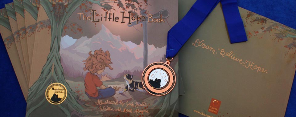 Co-Created by Encinitas teacher/writer, Leah Alagna, (who happens to be my daughter Aysha’s teacher) and local artist, Josh Hunter, The Little Hope Book was awarded the bronze medal for “Self-Esteem Book of the Year” by the Moonbeam Children’s Book Awards.