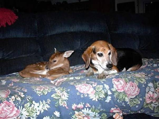 Guess who came home for dinner? It followed this beagle home, right through the doggy door. This happened in Maryland recently.