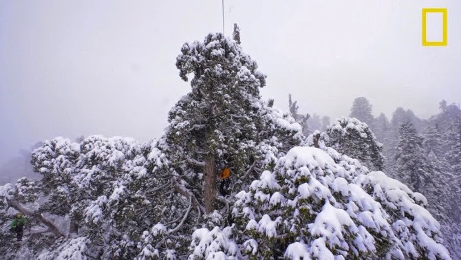 They had to climb the tree with pulleys and levers and took thousands of photos.