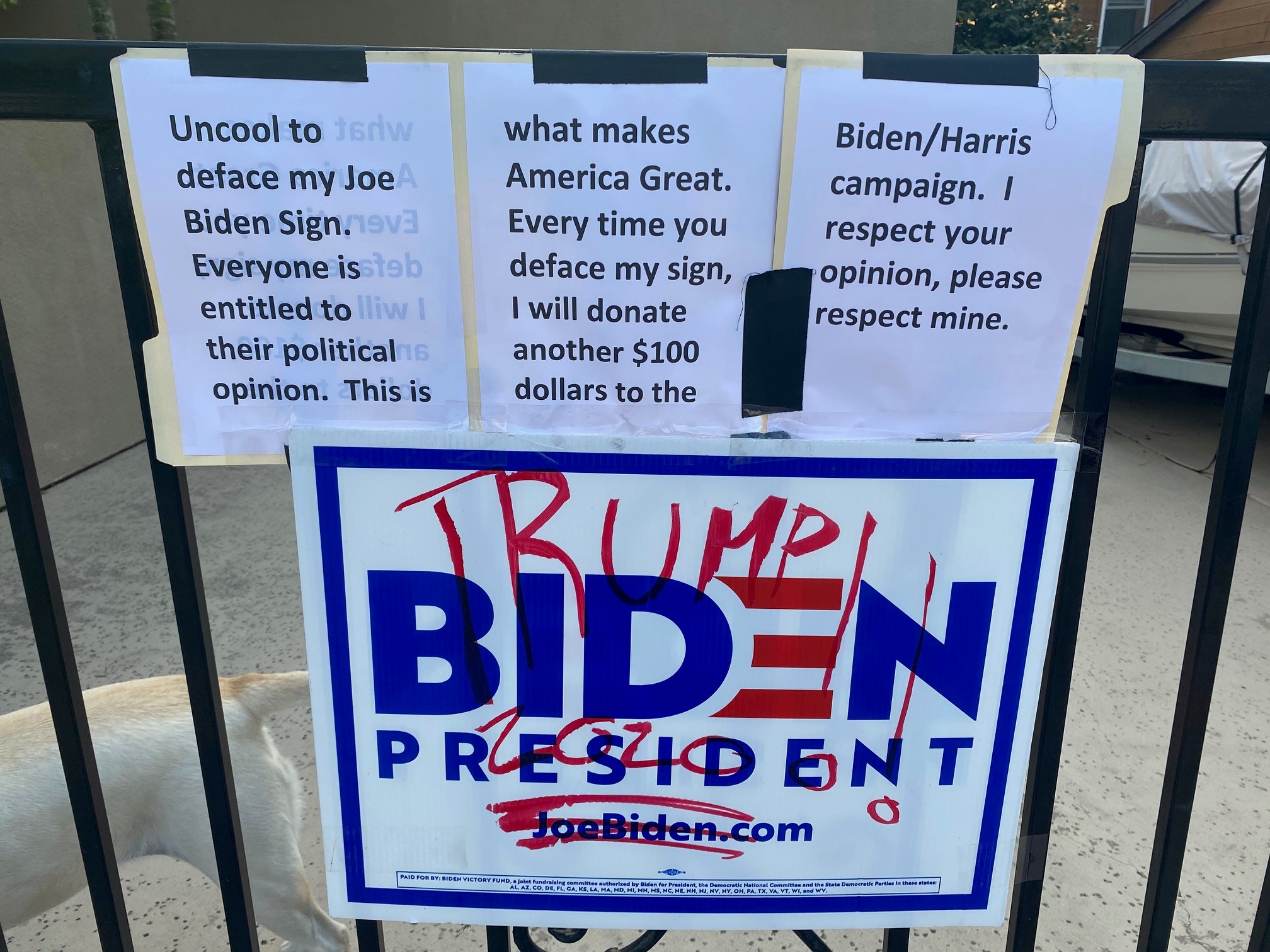 We were disappointed to have our yard sign defaced and this was our reaction: