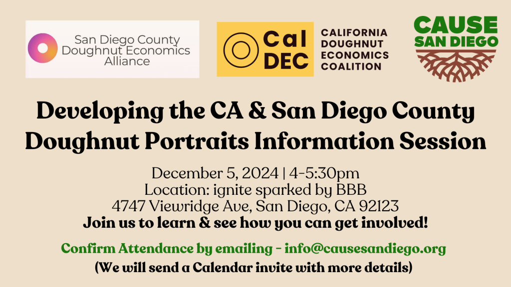 We are putting together a San Diego Doughnut Portrait with CalDEC (California Doughnut Economics Coalition) to solve for this important but complex question- in partnership with academia, business, government, and the social sector (nonprofits and philanthropy)